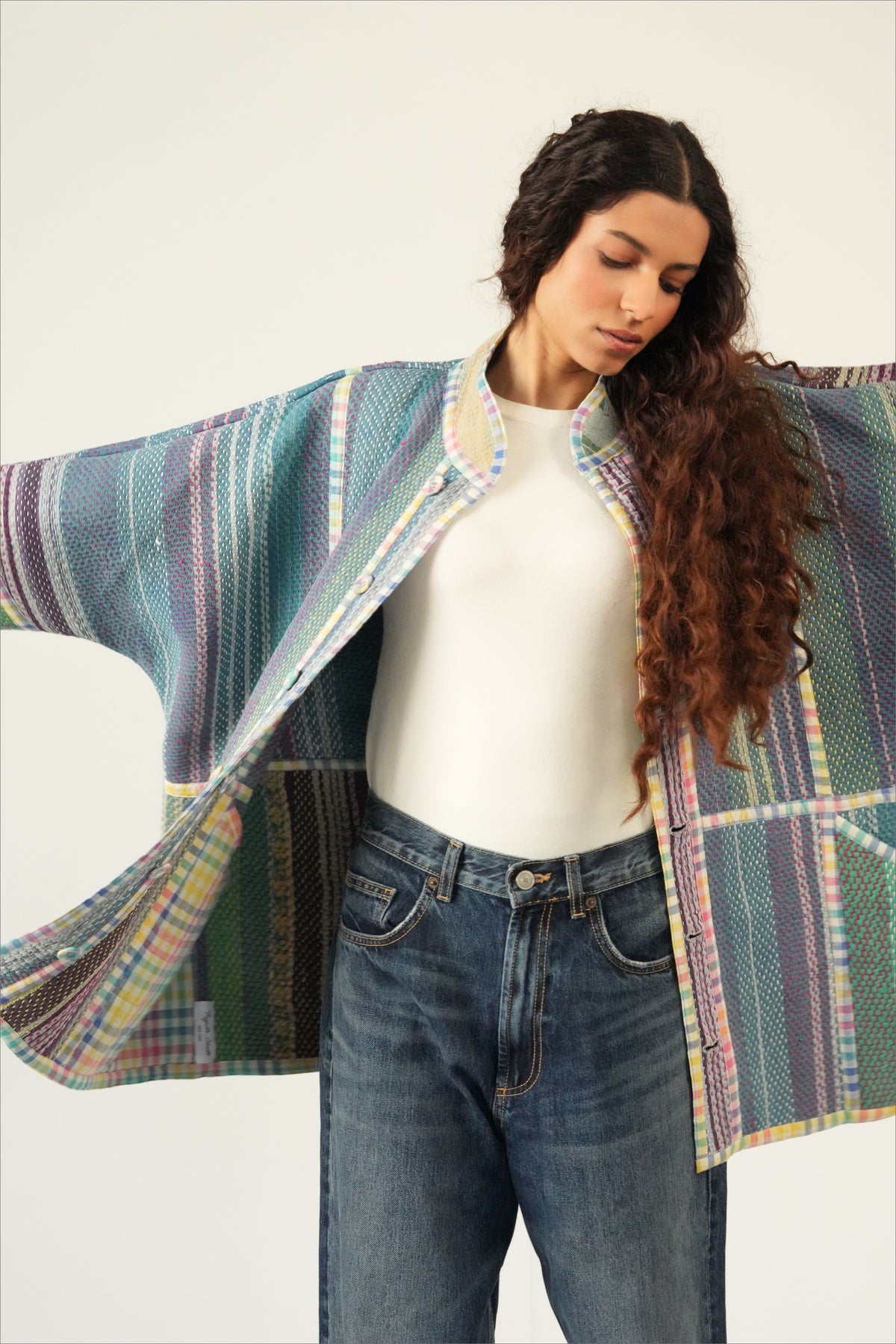 Reversible, genderless, and one size fits many, this coat adapts effortlessly. With generous pockets on both sides, contrast piping details, and wide sleeves. It’s a piece you’ll style a dozen different ways. Lightweight yet full of presence, it’s the rare kind of jacket that feels expressive, soulful, and endlessly wearable.