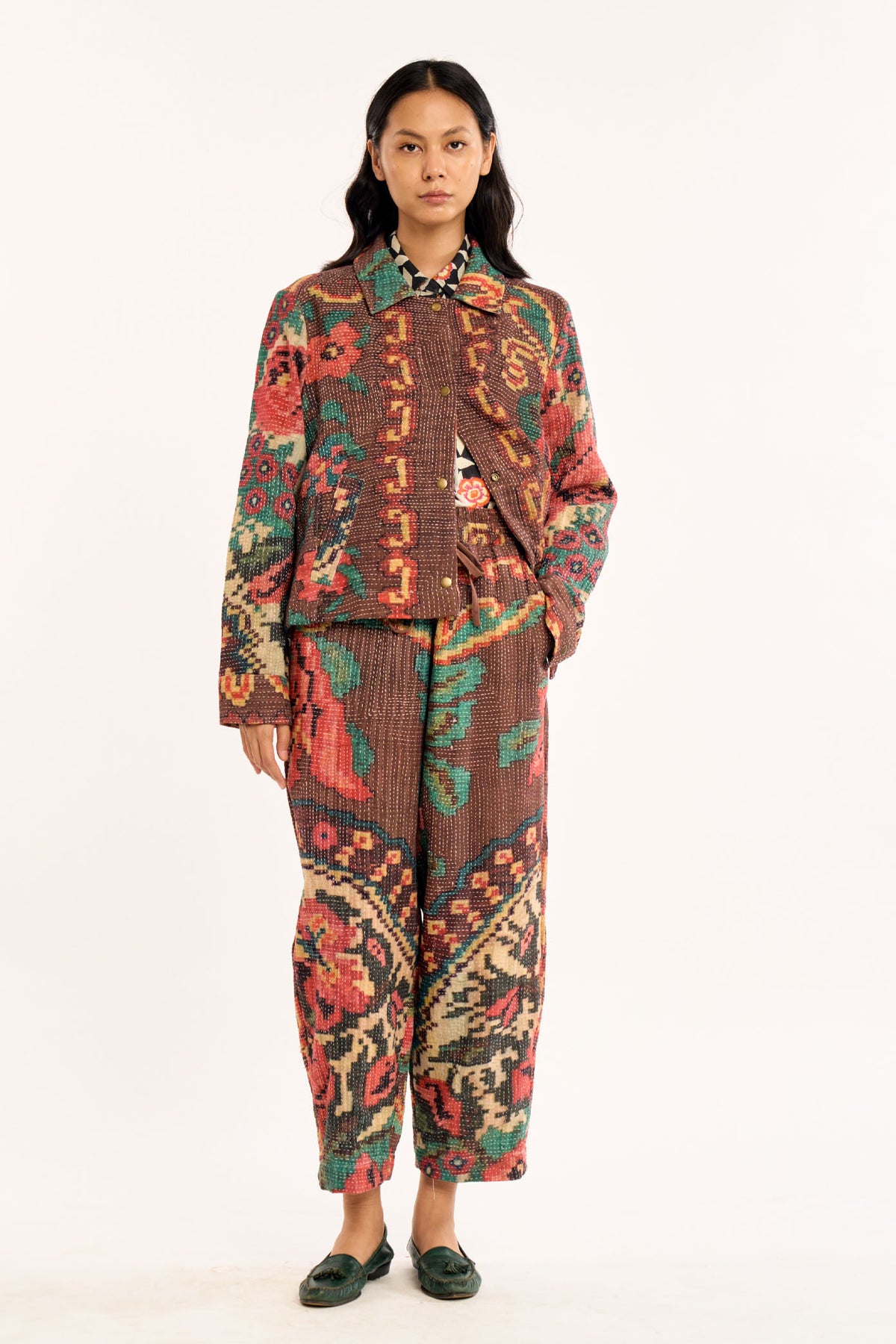 - Curved leg relaxed fit in a soft embroidered fabric for a relaxed, effortless style